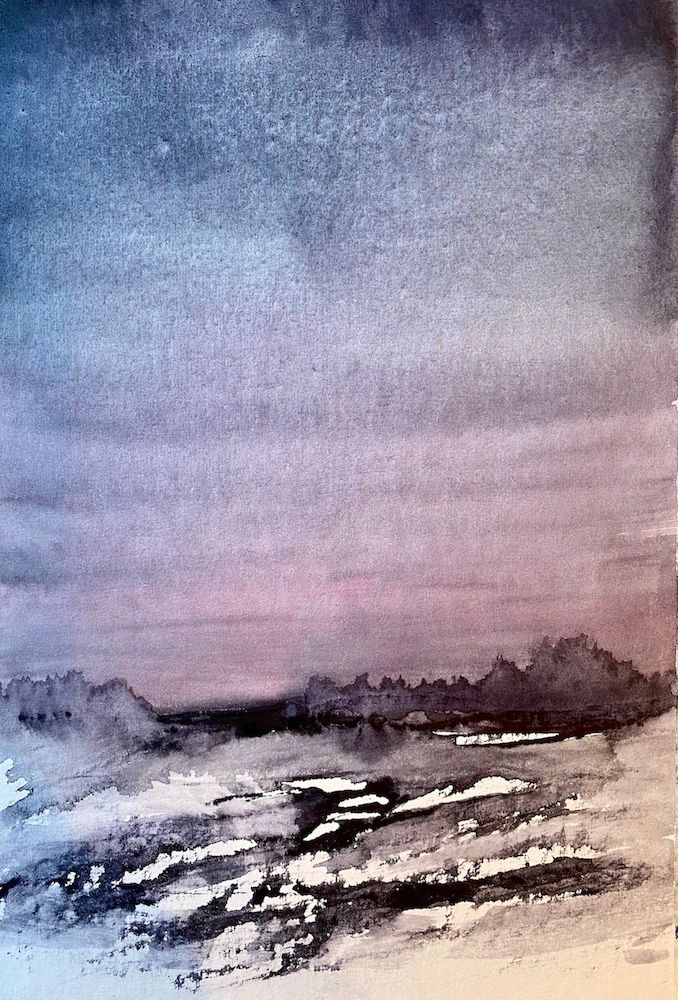 Jag rör mig mellan det abstrakta och det konkreta uttrycket och låter intuitionen och färgerna guida mig. Akvarellen med sitt direkta avtryck, akrylen med experimentmöjligheter och det digitala utforskandet lockar mig. Återkommande motiv är det som fascinerar mig mest: naturen och människor.