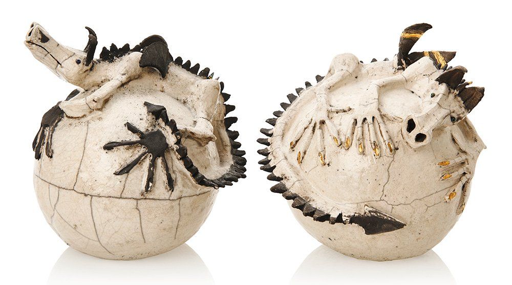 Jag har sysslat med keramik och måleri sen slutet av sjuttiotalet. I keramiken kavlar och skulpterar jag. Godset bränns utomhus med tekniken Raku, en gammal japansk metod. Mina verk formas i Lund i en verkstad som heter 1280 grader.