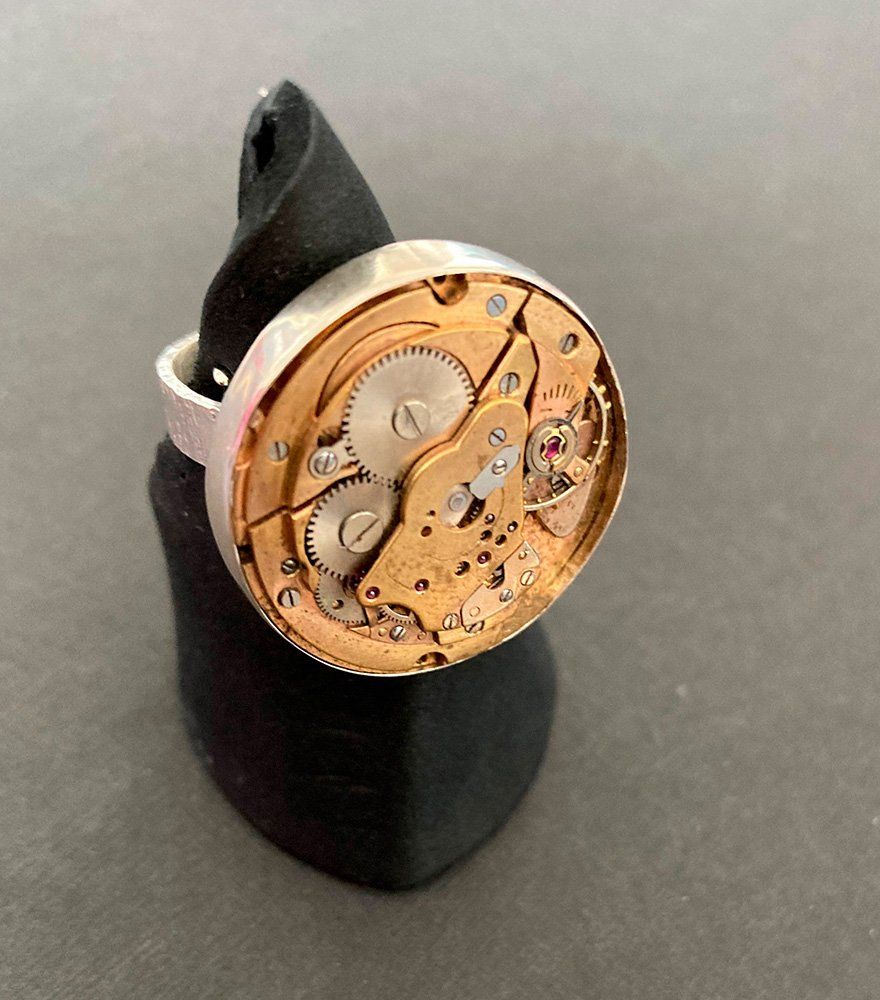Mina smycken med infattade urverk är ett resultat av detta. Min fru, Ingrid Åberg, och jag arbetade mycket tillsammans med att utveckla designen och att göra häftiga smycken.