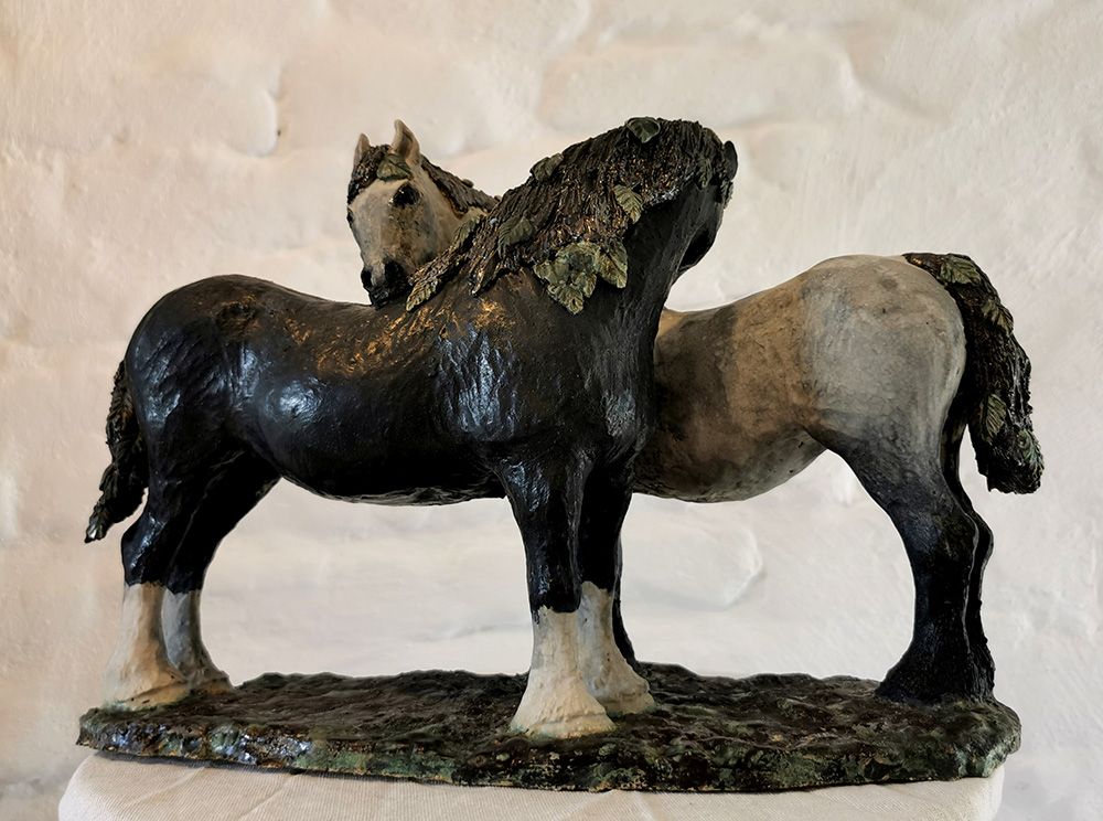 Natur och djur i min omgivning är en outsinlig källa till inspiration, ofta i kombination med historia, sagor och myter. Jag bor sedan många år på en gård utanför Vollsjö där jag också har min verkstad. Ett livslångt intresse för hästar påverkar min konst och jag strävar efter att fånga hästarnas själ och natur i mina verk.