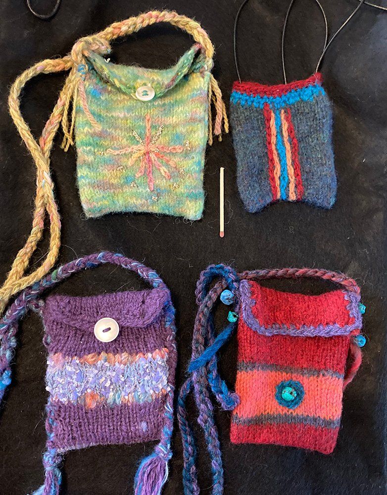 Jag är särskilt intresserad av etniskt hantverk genom resor framför allt i Sydamerika och genom mitt arbete i butiken AFRO ART i Stockholm på 70-talet. Jag gillar starka färger och djärva färgkombinationer. Restgarnsprojekt är min specialitet. Jag gör smycken av ull och glas, stickar barntröjor, mössor och valkade väskor samt stickar och valkar småväskor till telefoner etc. som jag broderar på.Kan också användas som smycken. Har varit medlem i över 10 år.