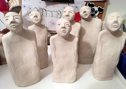 Att skapa i lera är som ett gift för mig – jag mår så bra med en klump lera i händerna. För det mesta blir det ansikten eller figurer av olika slag. Stengodslera använder jag oftast och jag bränner gärna i raku under sommarhalvåret.