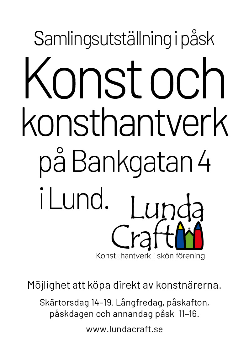 13 till 25 oktober ställde medlemmar i LundaCraft ut på Maria Thorlund Ateljé & Galleri på Bankgatan 15 i Lund.