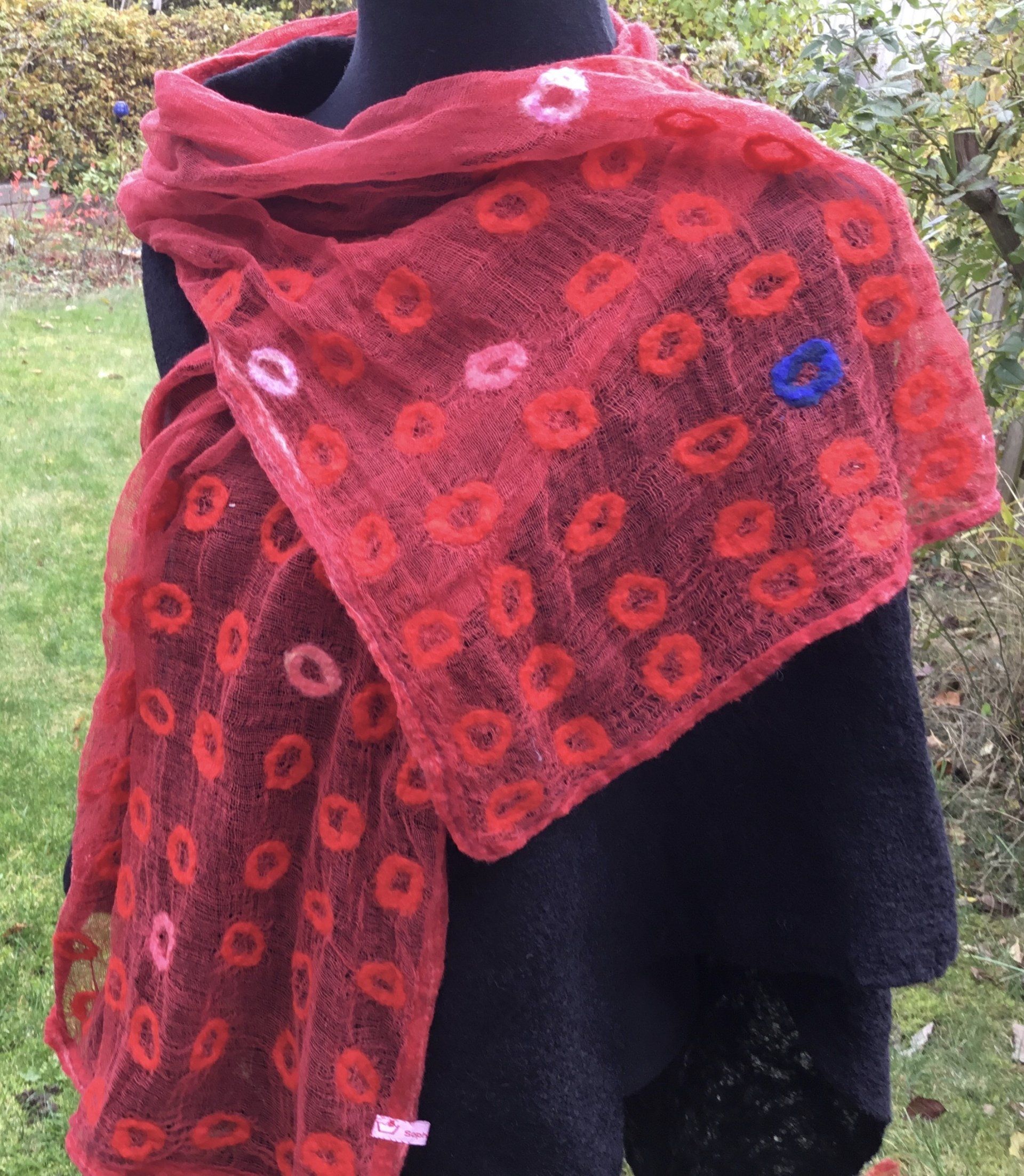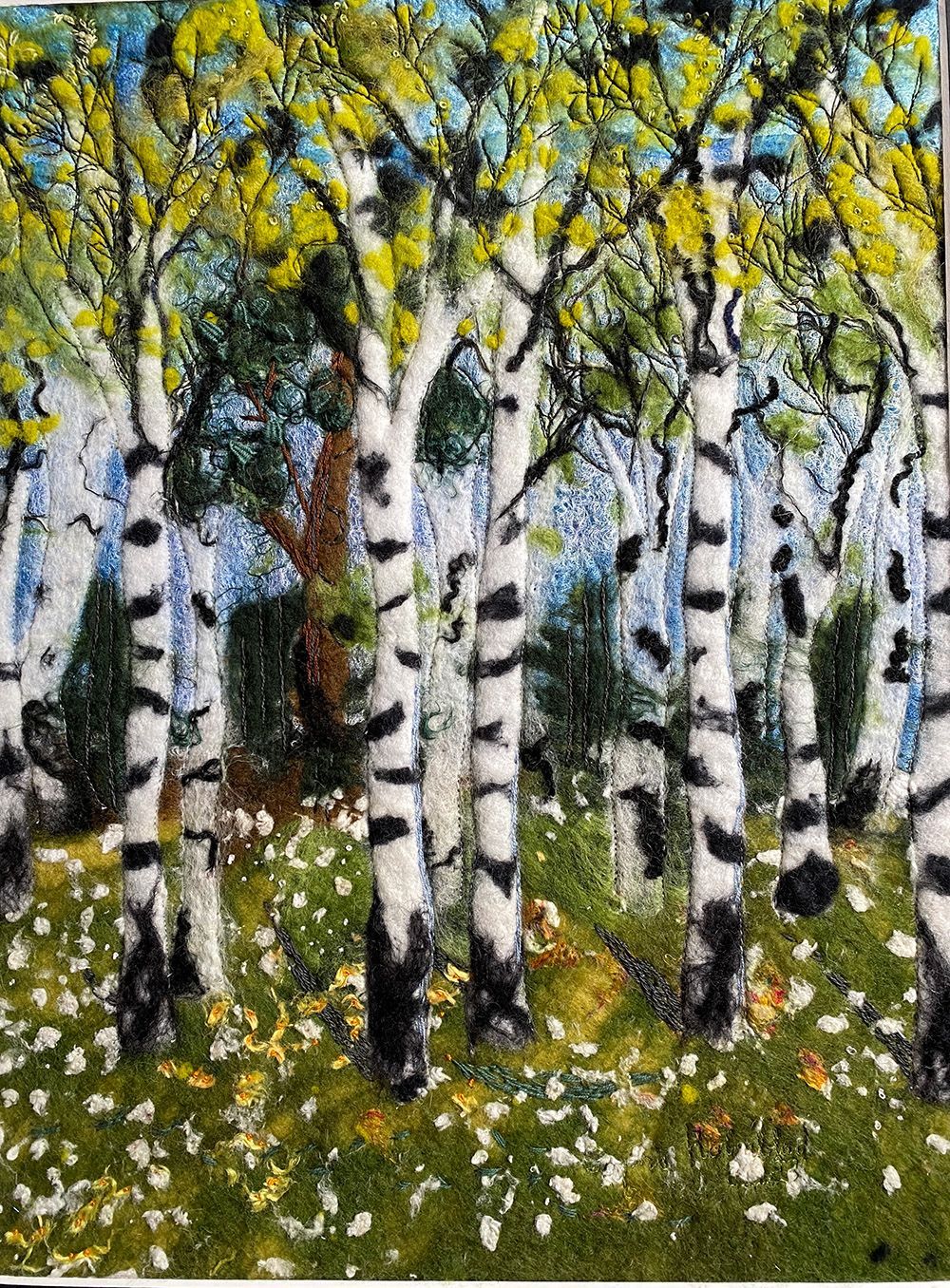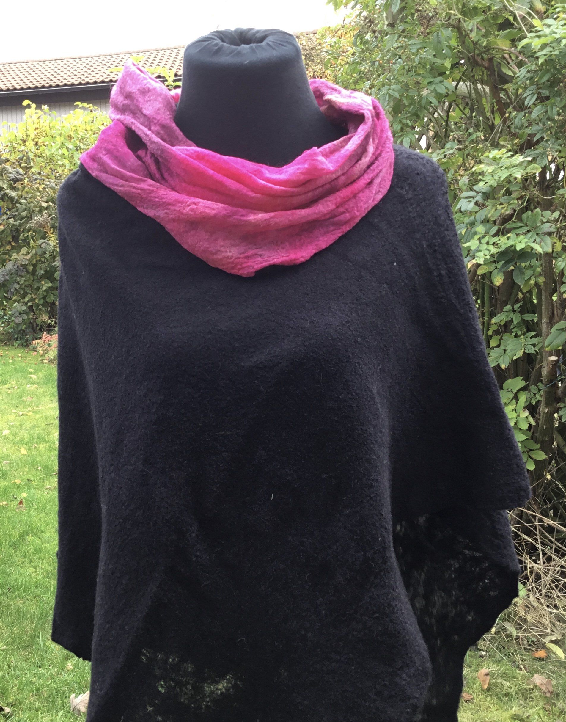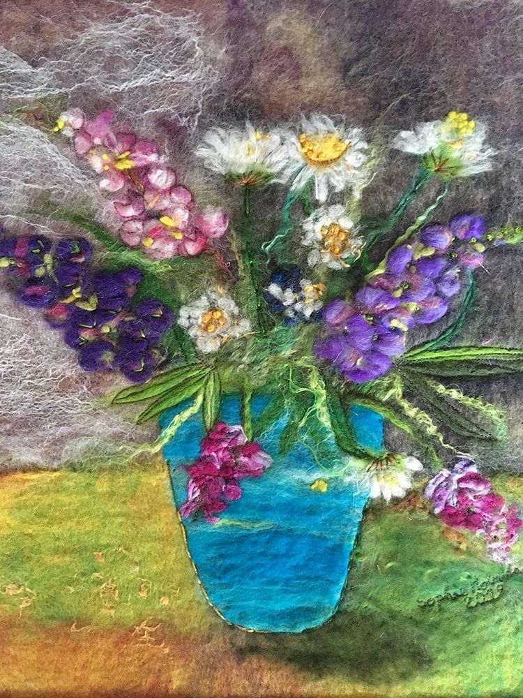 Jag tovar kläder, sjalar och bruksting, ofta i så kallad ”nunoteknik” där fin merinoull och tyg som siden, bomull eller viskos ingår. Broderar fritt, gärna på tovad bakgrund, och skapar textila bilder där jag använder ullens många färger i ”akvarellteknik”.